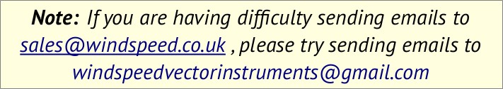 TECHNICAL SUPPORT: If you have a technical enquiry, and cannot find the information/answers you need on this website, then technical support is available via email at sales@windspeed.co.uk - we generally cannot answer technical questions over the telephone. If you telephone with a technical query, you will need to leave an email address where we can contact you with an answer.